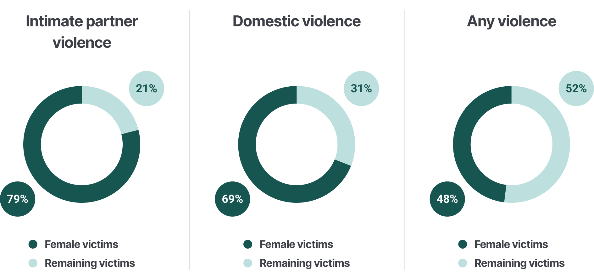 - Roughly 4 out of 5 victims of intimate partner violence are women (79% in 2022)