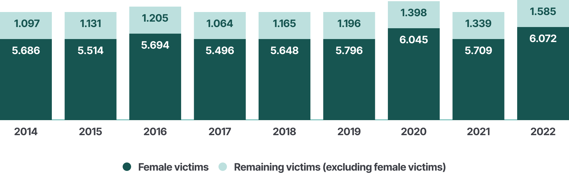 EIGE’s 2022 data also shows that women represent 96% of victims of rape by any perpetrator (1737 out of 1807).