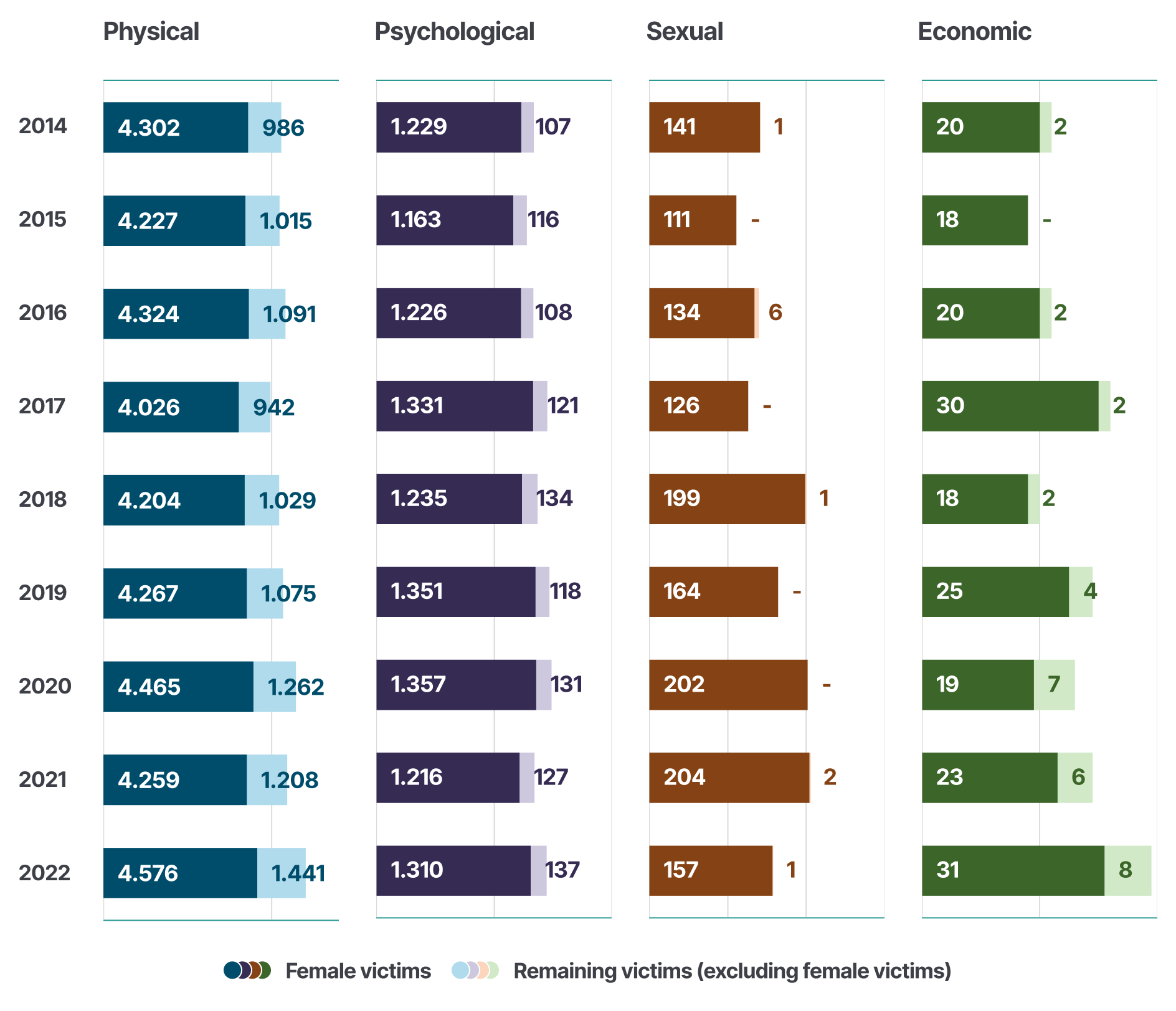 Similarly, data has been shared on the annual number of female and total victims of rape by intimate partners, domestic perpetrators and any perpetrators (2014–2022).