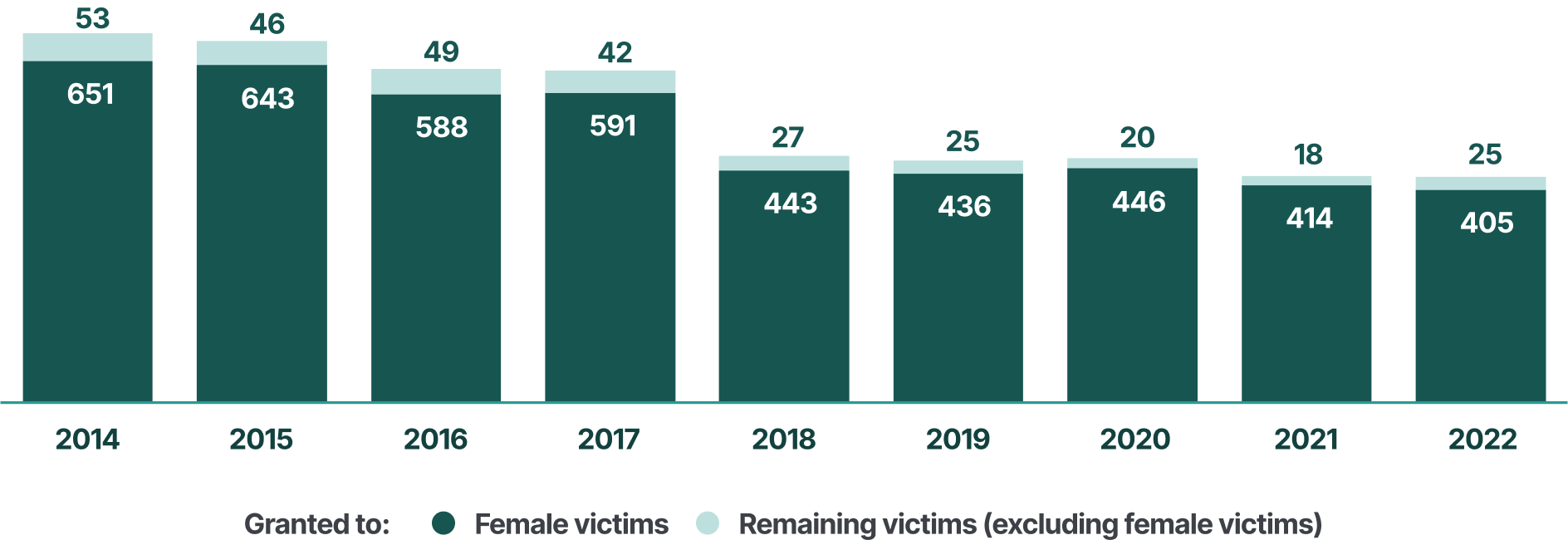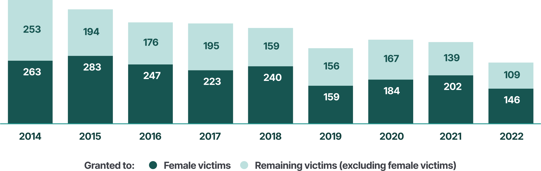 - In 2022, 430 protection orders were granted to victims of intimate partner violence, of which 405 (94%) were issued to women.