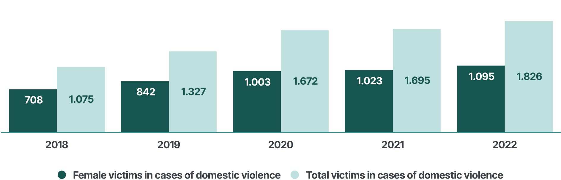 Figure 1 Annual number of female and total victims in cases related to domestic violence (Indicator 1), 2018-2022