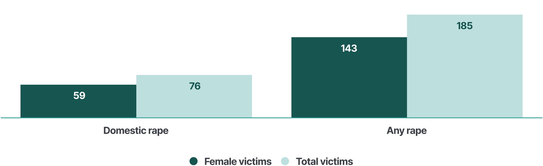 In the same period, police recorded 143 women victims in cases that involved any rape. Between 2018 and 2022, women comprised 77 % of victims in cases related to any rape (143 out of 185).