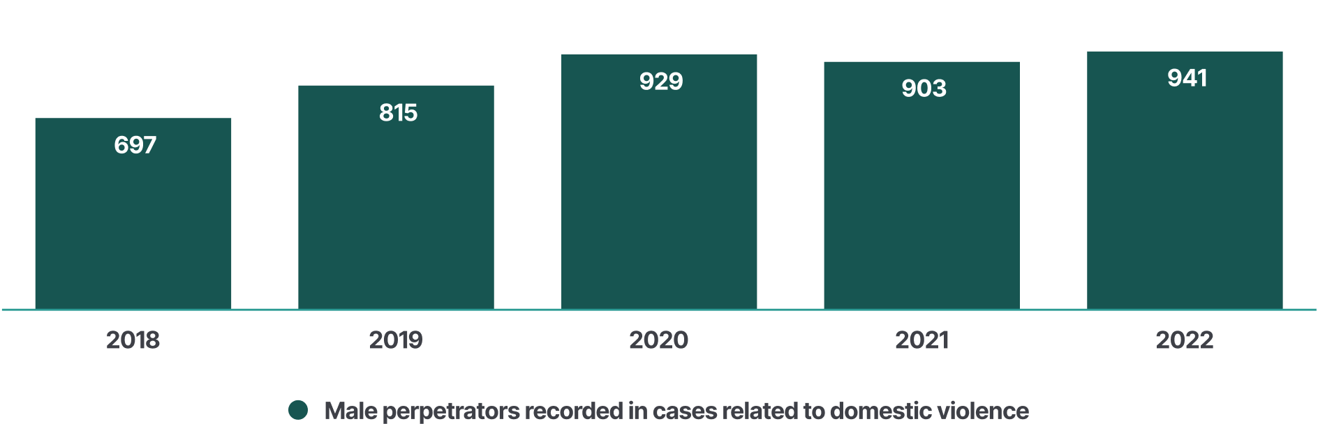 In 2022, police recorded 941 male perpetrators in cases involving domestic violence. The data presented below is not disaggregated by the sex of the victim.