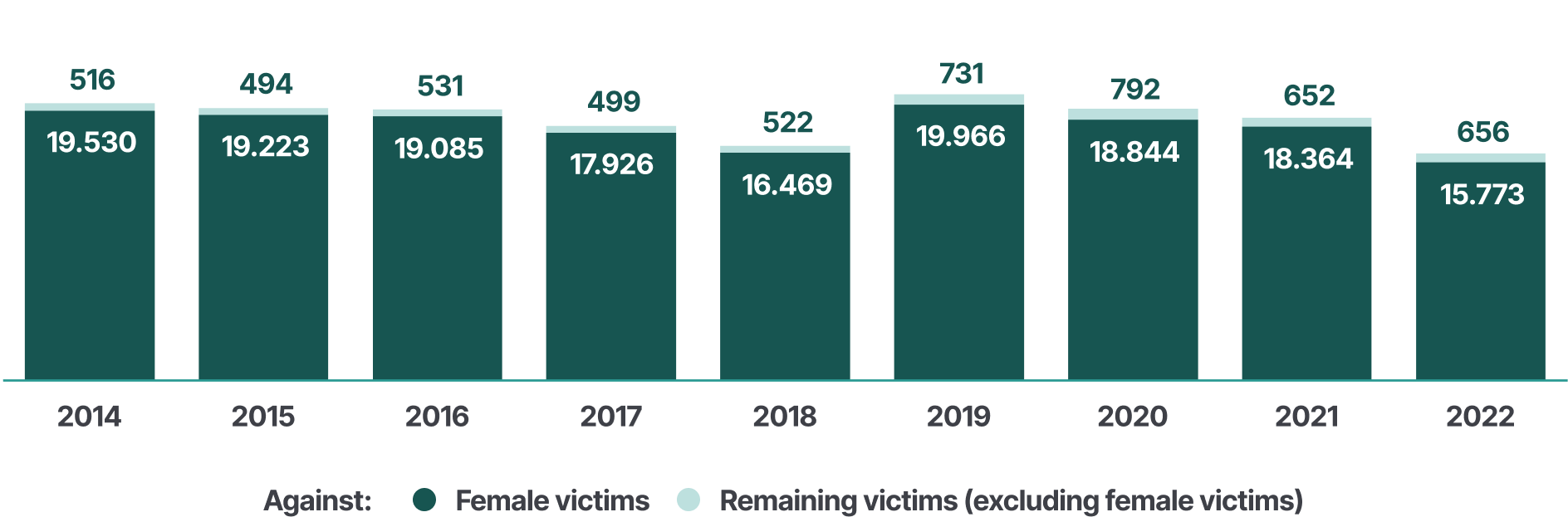 • 92 % of victims of rape committed by any perpetrator are women (according to data from 2022).